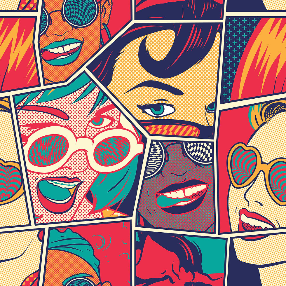 Pop Art synonymous with Andy Warhol was a movement by young artists who felt that the art seen in the world had nothing to do with the current state of their lives. They found inspiration in Hollywood movies, advertising, product packaging, pop music and comic books for their artistry. The Pop Art collection can be printed on a variety of base cloths. Our personal favourite would be to print on the President Velvet.